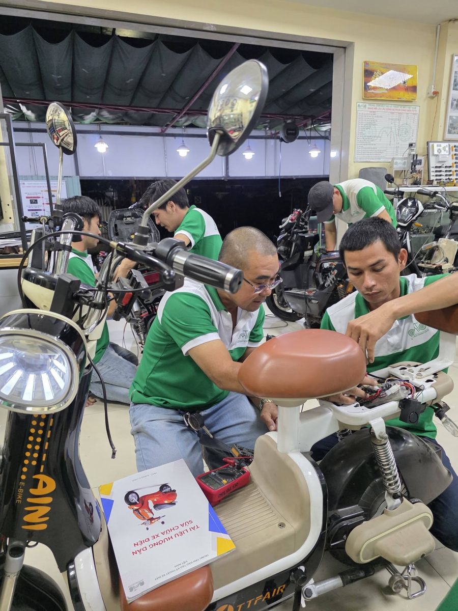 Tại Trung tâm đào tạo kỹ thuật xe máy Việt Nam, học viên được giảng dạy lý thuyết từ cơ bản, học chắc nền tảng trước khi thực hành, thực hành trực tiếp trên xe máy điện thật và phân tích lỗi theo quy trình kỹ thuật rõ ràng. Đào tạo đến khi làm được việc thực tế.