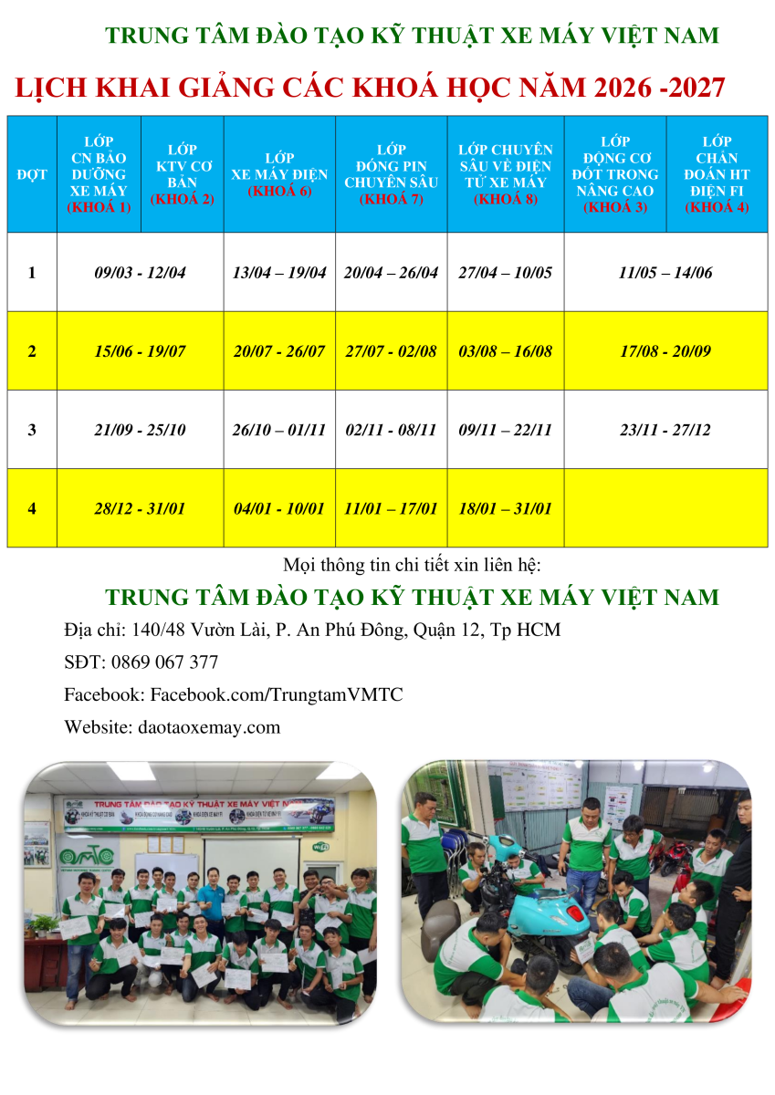 1. KHÓA ĐÀO TẠO CÔNG NGHỆ BẢO DƯỠNG XE MÁY: